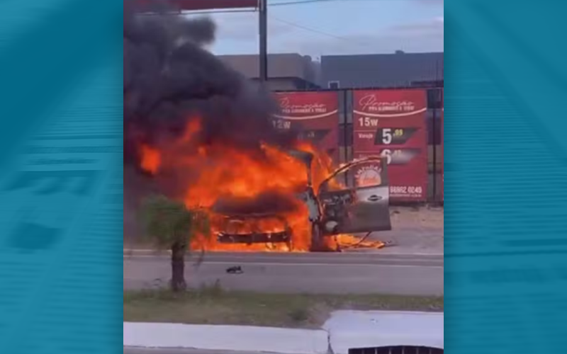 Nas imagens é possível ver que o automóvel estava estacionado em frente a uma loja de materiais e artigos elétricos, que não foi atingida. Apenas o carro foi consumido pelas labaredas.