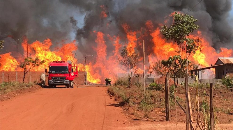 Um incêndio de grandes proporções ocorreu, hoje, em uma empresa de fabricação e armazenamento de paletes de madeira localizada no bairro São Mateus, em Várzea Grande. As chamas destruíram um caminhão, que estava no pátio, e danificaram parcialmente a estrutura do setor administrativo.