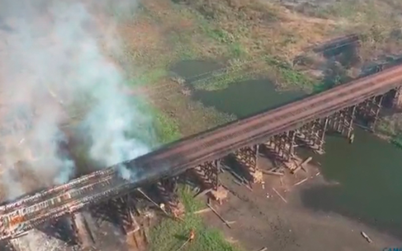 Ponte que cruza o Pantanal de Corumbá pela Estrada Parque foi destruída pelos incêndios que assolam o bioma na tarde desta terça-feira (18). As imagens aéreas, capturadas pelo Corpo de Bombeiros Militar do município, mostram os estragos registrados na MS-228, a 428 quilômetros de Campo Grande.