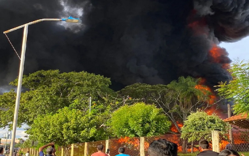 Grama e vegetação rasteira foram atingidas pelas chamas. A fumaça preta decorrente da queima de pneus e mobiliários que estavam armazenados no espaço começou a ser avistada de vários pontos da cidade por volta das 17h.