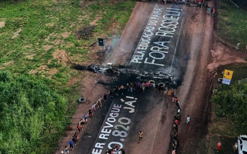 Desde a tarde de quinta-feira (16), indígenas bloqueiam o Km 83 da BR-163, utilizando madeiras incendiadas para interditar a via em protesto contra a Lei 10.820, aprovada pelo Governo do Pará. Motoristas enfrentam dificuldades para trafegar no trecho, e vídeos divulgados na sexta-feira (17) mostram veículos passando por cima das chamas na tentativa de seguir viagem.
