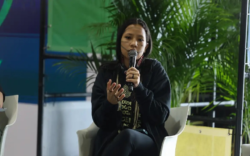 “Hoje no Brasil, estamos sofrendo um retrocesso muito grande, principalmente sobre o Marco Temporal. Hoje [estamos] debatendo para que o Estado brasileiro coloque a demarcação das terras indígenas como pauta climática”, declarou.