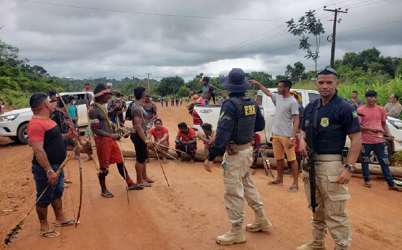 A manifestação pacífica reúne cerca de 170 indígenas de seis diferentes etnias, segundo a Polícia Rodoviária Federal (PRF), que está no local, no km 786 em frente à uma Base de Segurança Territorial da Etnia Arara.