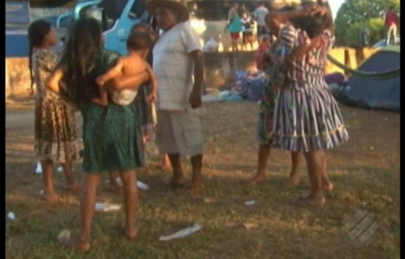 Os indígenas querem ir para um abrigo, com estrutura mínima. O acampamento improvisado foi montado no entorno do terminal. Moradores de Altamira foram até o local levar doações para os refugiados.