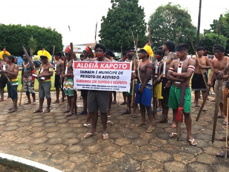Os índios da aldeia Kapoto, localizada na região da estada E60, a cerca de 290 quilômetros de Peixoto de Azevedo (197 quilômetros e Sinop) voltaram a ocupar a prefeitura, esta manhã. Segundo um dos representantes dos indígenas na região, Messias Clemente Rondon, eles reivindicam a construção de uma escola, recuperação das estradas e melhoria no atendimento na saúde com repasses dos recursos do Estado para o consórcio. Participam do manifesto cerca de 20 índios.