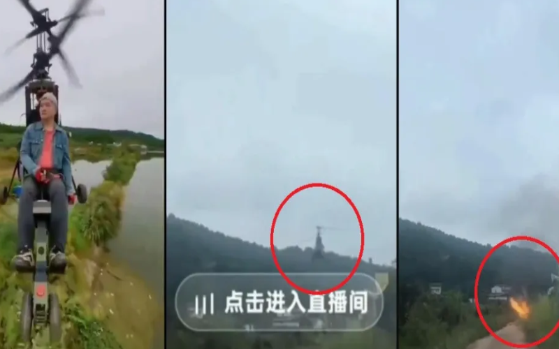 Tanji realizava uma live na rede social chinesa Douyin quando a aeronave colidiu com o chão e pegou fogo.