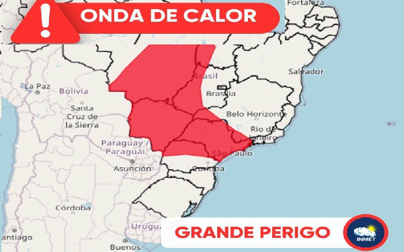 ⚠️ #Atenção: Previsão de onda de calor, até domingo (24), em áreas de MT, PA, TO, GO, MG, RJ, SP, PR e em todo o MS. A temperatura pode ficar 5ºC acima da média por um período superior a 5 dias.