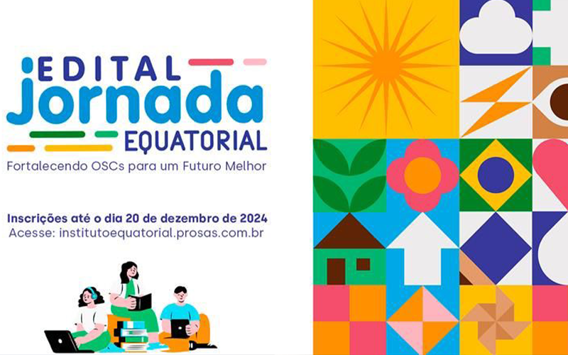 O Instituto Equatorial, em parceria com a plataforma Prosas Tecnologia Social, lançou o edital Jornada Equatorial nos estados de Alagoas, Amapá, Goiás, Maranhão, Pará, Piauí e Rio Grande do Sul, reforçando o compromisso da instituição com o desenvolvimento social em territórios onde o Grupo Equatorial atua. O projeto visa selecionar e capacitar 300 Organizações da Sociedade Civil (OSCs) com formação e mentoria para elaboração de projetos e captação de recursos. A Equatorial Pará, empresa do Grupo Equatorial, apoia e estimula a participação das Organizações paraenses no edital da Jornada.