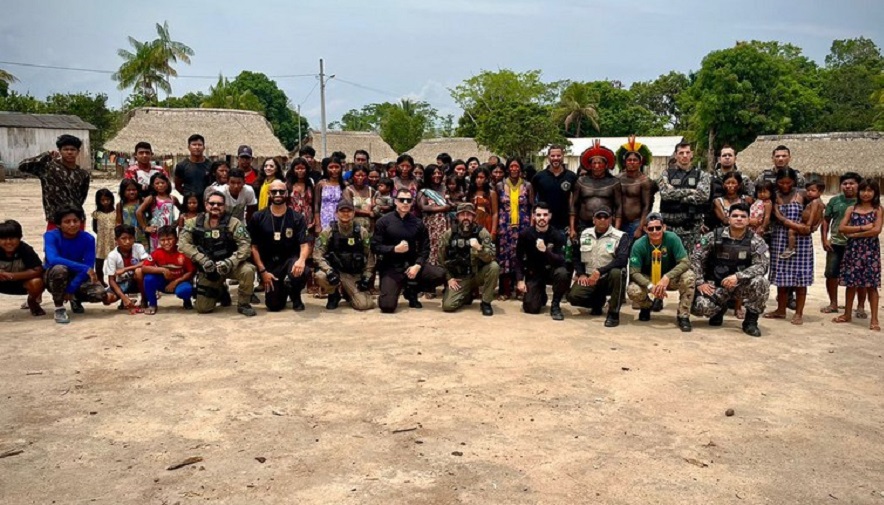 A equipe com 14 servidores, incluindo membros da Polícia Federal (PF), Força Nacional de Segurança Pública, ICMBio e Censipam, foi recebida na Oca dos Guerreiros por toda a comunidade indígena. O convite veio em agradecimento à retirada de garimpeiros de dentro da Terra Indígena Baú, ação realizada pela PF e apoiada pela Operação Guardiões do Bioma – Eixo Desmatamento. A Força Aérea Brasileira também contribuiu nessa missão, que ocorreu no final de agosto. A ação conjunta retirou mais de 50 pessoas do Garimpo Pista Nova.
