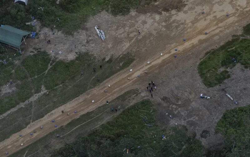 Pista de pouso clandestina em terra ianomâmi usada pelo garimpo ilegal na Amazônia — Foto: Victor Moriyama / The New York Times