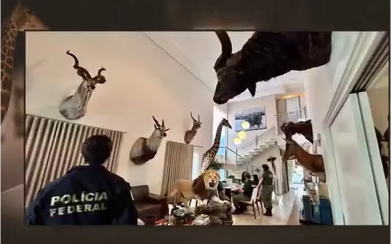 “O investigado é caçador profissional. Ele praticava essa caça no continente africano, depois trazia a carcaça dos animais, depois são empalhados e estavam expostos na casa dele”, explica o delegado.