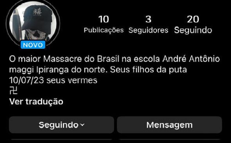 A ameaça foi no instagram, printada e compartilhada em vários grupos de redes sociais.