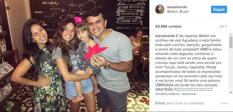 O ator também apareceu com uma camisa do Paysandu no Instagram do clube nesta terça-feira (10). Já Isis Valverde usou sua rede social de fotos para agradecer o carinho dos fãs e dizer que se sente acolhida na capital paraense.
