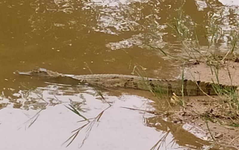 (Foto:WhatsApp) – Um jacaré foi flagrado “se refrescando” no Lago Municipal.