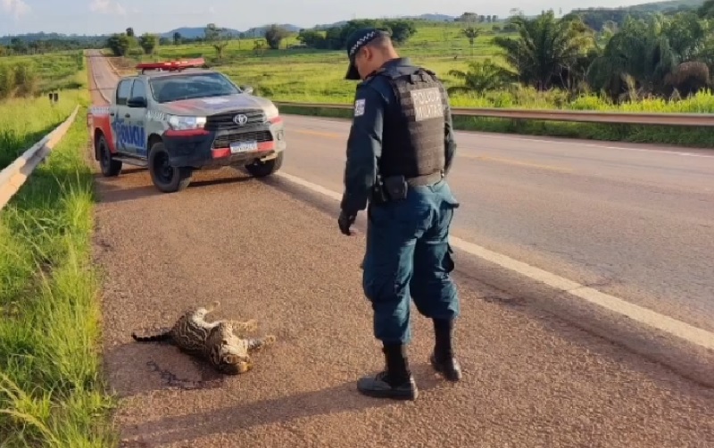 Jaguatirica morta é encontrada às margens da BR-163, em Novo Progresso