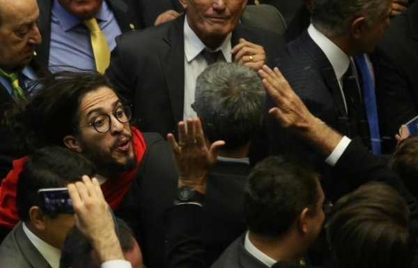 Jean Wyllys cospe em Bolsonaro durante sessão do impeachment.