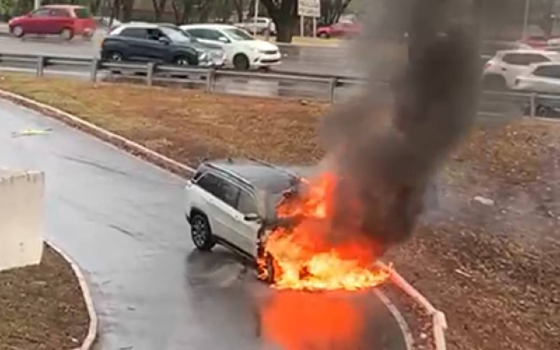 Jeep Commander pega fogo ao passar por tesourinha na Asa Norte