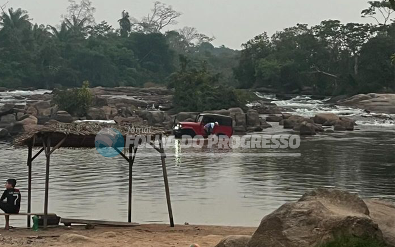 Jeep entra no Rio Curuá e fica preso nas pedras;Vídeo