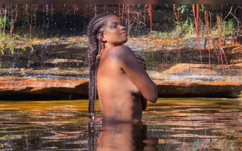 Foto Reproduçaõ|Jeniffer Nascimento viraliza com foto seminua em cachoeira e se prepara para seu retorno à TV na nova novela Êta Mundo