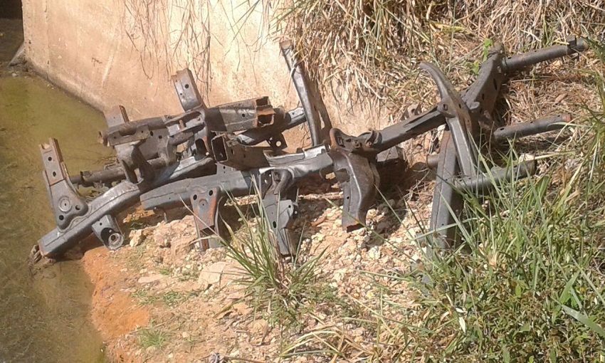No local existem uma ponte de bueiro em concreto onde a possibilidades dos autores terem desovado este veiculo e jogado ainda na época da chuva ,quando o córrego estava cheio, as peças somente apareceram devido a seca e a baixa no volume d’água no córrego, elas ficaram visíveis.