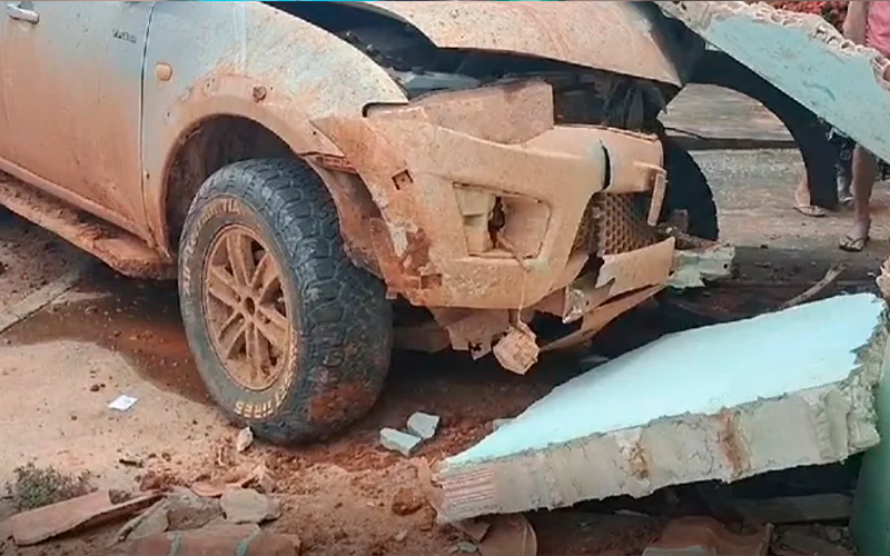 Jovem bate caminhonete em muro de residência em Itaituba-Pará