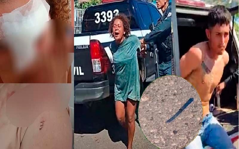 Complementou que “a faquinha de serra pegou na minha cara e no meu braço, que foi um pouco mais fundo, e no rosto pegou entre o olho e sobrancelha”. Conforme ela, após jogar o aparelho celular, o casal empreendeu fuga.