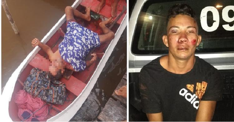 Quando chegavam ao local em embarcações, os policiais encontraram o idoso que foi baleado já dentro da lancha de um morador, que prestou socorro à vítima. Na mesma embarcação, vinha Gean, amarrado ao lado do pai e com vários ferimentos pelo corpo, resultantes de uma tentativa de linchamento que sofreu por parte de pessoas indignadas pela violência contra seu próprio pai.