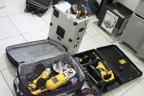 Com apenas 18 anos, Riquelme Eduardo da Costa, esconde uma vasta experiência com um tipo bem específico de crime. Abordado em uma operação de rotina do Batalhão de Polícia Rodoviária Estadual (BPRV) na rodovia PA-483, a Alça Viária, Riquelme foi preso, hoje (03) pela manhã, com duas valises contendo várias ferramentas usadas em roubos a bancos. Entre os maçaricos, serras elétricas e furadeiras, o que mais chamou a atenção da polícia foi um bloqueador de sinais que o jovem transportava. Avaliado no mercado ilegal em cerca de R$ 100 mil, o equipamento é raro e utilizado para incapacitar qualquer tipo de sinal eletrônico, inclusive, o sistema de alarme dos bancos.