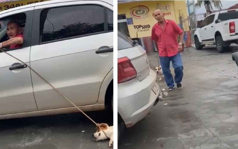 Vídeo que circula nas redes sociais mostra o ex-vereador arrastando a cadela pelas rudas da cidade. Ele é advertido por um cidadão e xinga o homem.