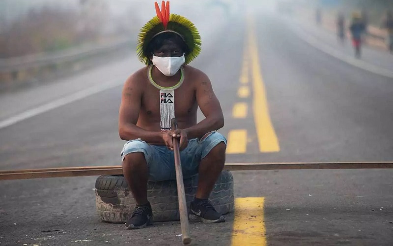 ndígenas bloqueiam rodovia nos arredores de Novo Progresso, no Pará, exigindo ajuda contra o coronavírus e o fim da mineração ilegal e do desmatamento. (Foto: João Laet / AFP)