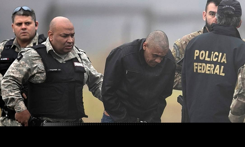 Adélio Bispo de Oliveira é escoltado por policiais no aeroporto de Juiz de Fora (Foto: Ricardo Moraes/Reuters/)