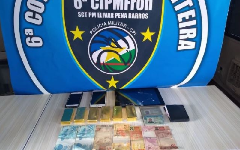 Barras de ouro, dinheiro e documentos dos suspeitos foram apreendidos pela Polícia Militar — Foto: Polícia Militar/ Divulgação