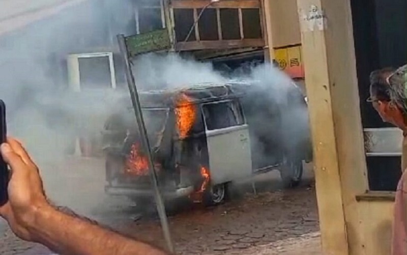 Uma Kombi foi consumida pelas chamas na manhã desta terça-feira (24 dez. 2024), na travessa Salim Mauad, próximo a uma churrascaria no centro de Altamira, no sudoeste do Pará.