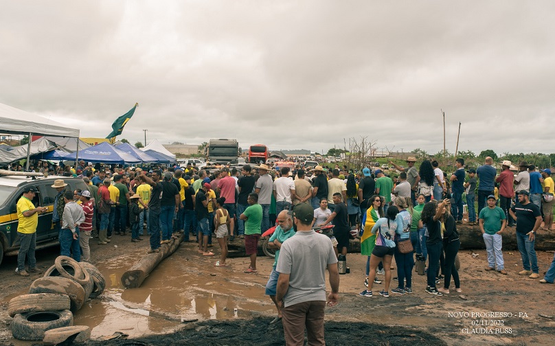O confronto entre agentes da Polícia Rodoviária Federal (PRF) e manifestantes que interditavam a BR-163, em Novo Progresso, sudoeste do Pará, no final da manhã desta segunda-feira (7), deixou um policial ferido. Segundo a PRF, os agentes foram atacados com rojões, pedras e objetos diversos. Mas, em áudio que circula nas redes sociais, um morador da cidade, identificado como Fábio Teixeira, que diz ter sido uma das pessoas a tentar negociar a liberação da via de forma pacífica, relata a versão dos participantes dos atos contra a eleição de Luiz Inácio Lula da Silva à presidência.