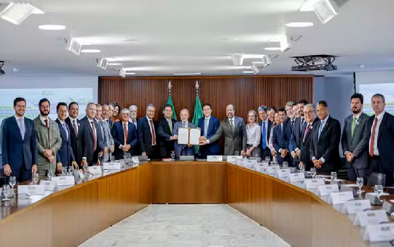 Lula reuniu no Palácio do Planalto ministros e os presidentes da Câmara, Hugo Motta, e do Senado, Davi Alcolumbre (União Brasil-AP) para assinar a MP.