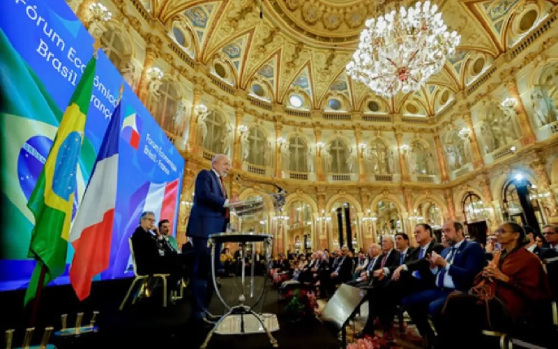 Ele participou da sessão de encerramento do Fórum Econômico Brasil-França, encontro que reuniu autoridades e líderes empresariais de ambos os países. Lula destacou as potencialidades dos dois países para investimentos nos setores da transição energética, indústrias da saúde e de defesa e no agronegócio.