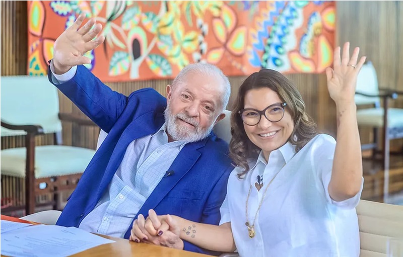 Lula e Janja participam (por videoconferência) da cerimônia dos 20 anos de criação do Bolsa Família, no Palácio da Alvorada — Foto: Ricardo Stuckert / PR