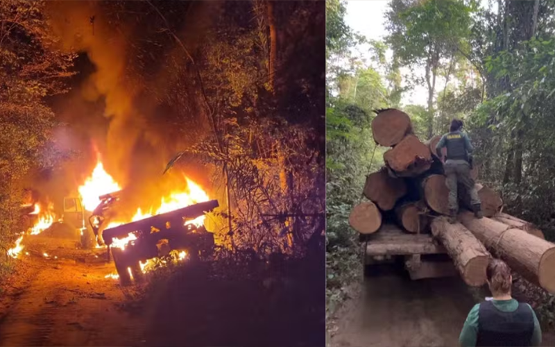 Durante a ação foram inutilizados 13 caminhões de transporte de toras, que seriam levados a serrarias para o transporte da madeira extraída da Amazônia.