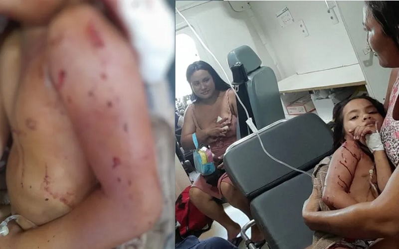 A criança ficou bastante machucada, e a mãe também levou mordidas ao tentar desvencilhar a filha do ataque do cão.