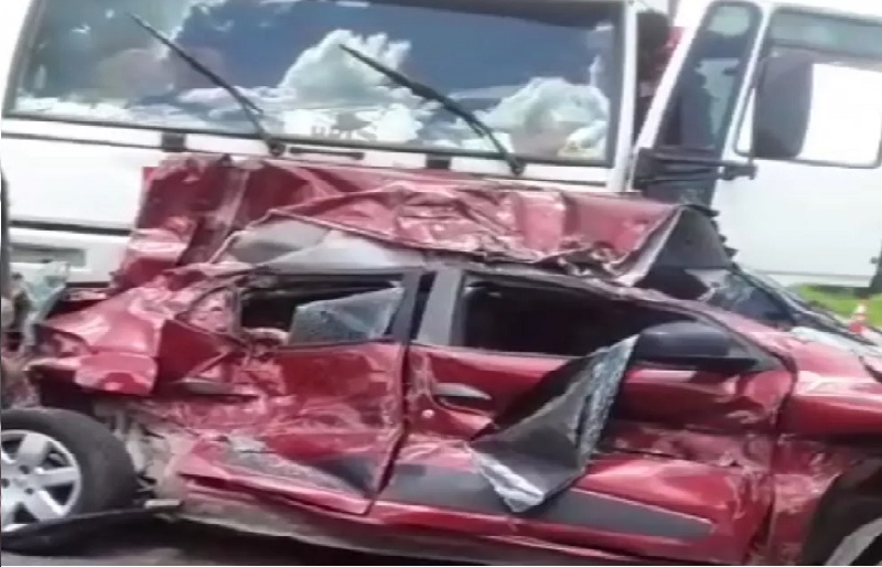 Duas pessoas morreram em um acidente no km 10 da rodovia BR-316, sentido Marituba-Belém, na tarde desta quarta-feira (18). O acidente envolveu cinco veículos, sendo dois caminhões e três carros de passeio. Um dos carros ficou imprensado entre os dois caminhões. Uma mulher e o filho, de dois meses, que vinham no banco de trás do veículo, não resistiram aos ferimentos e morreram no local.
