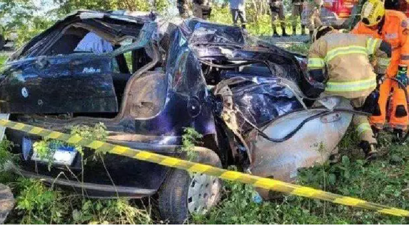 Família estava em único carro, que derrapou, saiu da pista e bateu em uma árvore em Itacarambi, no norte de Minas Gerais. Eles tinha saído de Paraopeba, Região Central mineira