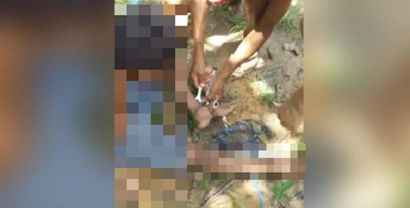 No vídeo gravado por uma testemunha, populares tentam quebrar o cadeado que prende a corrente, utilizando duas chaves de fenda. Moradores ficaram chocados com a cena de tortura, e denunciaram o caso à polícia.
