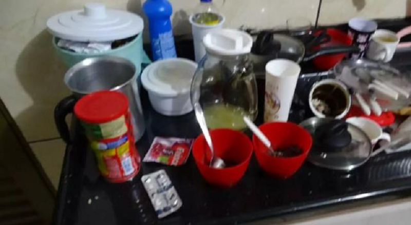 A polícia também foi até o local e encontrou a casa suja com vômito da criança na sala, entre a porta que dá acesso a um dos quartos. A televisão estava ligada em uma animação infantil. A pia da cozinha também estava com louças sujas.