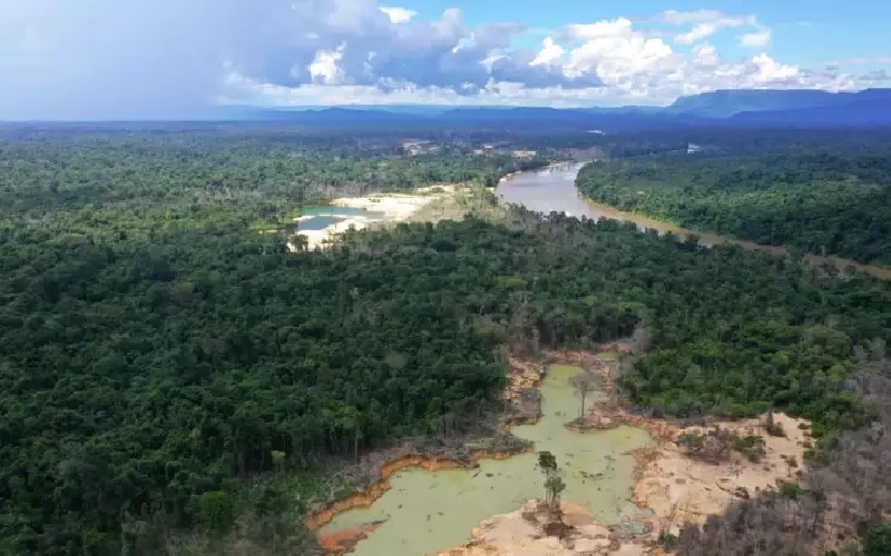 Garimpo ilegal é um dos principais fatores para a crise humanitária que sofre os yanomamis (Foto:João Laet/The Guardian).