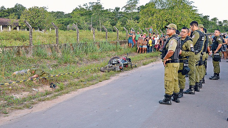 No fim da tarde, por volta das 17h, a comunidade do bairro do Aurá praticamente parou para assistir ao trabalho que a perícia criminal fez na Estrada do Aurá. A pouco mais de 500 metros de um fim de linha de ônibus, o cabo PM Gelásio Estumano Marques Júnior, do Batalhão de Polícia Penitenciária, foi executado a tiros, quando seguia de motocicleta para um sítio que tinha no fim daquela via.