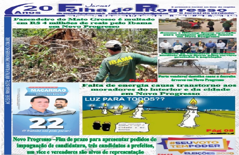 Ao completar 20 anos, a edição impressa do Jornal Folha do Progresso, está circulando desde sábado 10 de outubro em Novo Progresso e região.