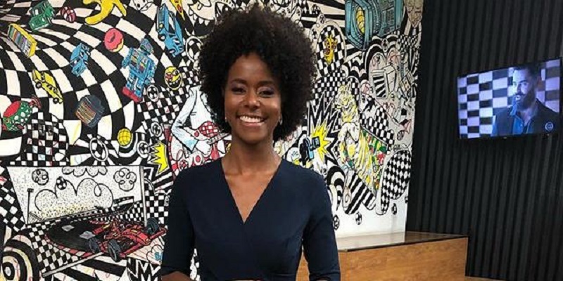 (Foto:Reprodução)-Em fevereiro, a garota do tempo sentou na bancada do Jornal Nacional