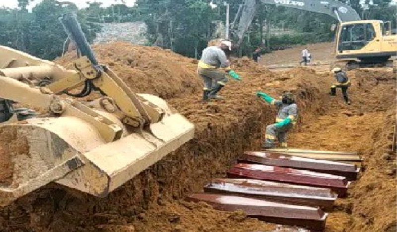 Com um número alto de mortes nos últimos dias, a Secretaria Municipal de Limpeza Urbana (Semulsp) de Manaus adotou o sepultamento por meio de trincheiras no cemitério público Nossa Senhora de Aparecida, mais conhecido como cemitério do Tarumã.