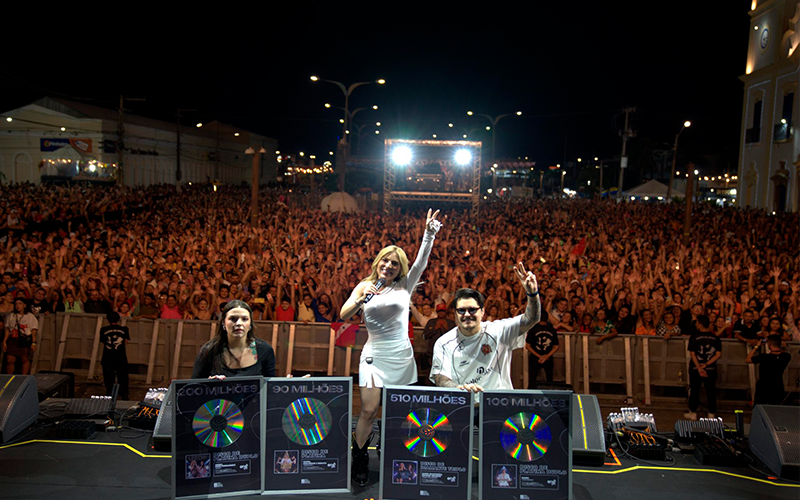 (Foto: Reprodução)- Manu Bahtidão foi surpreendida por sua equipe durante o show em Aracati/CE com a entrega de quatro discos certificados pelo Pró Música. Fenômeno em todo o país, a cantora recebeu no palco, na frente de milhares de pessoas, quatro certificados: um de Diamante Triplo, dois de Platino Duplo e um Platina, reafirmando ainda mais seu sucesso, que conquistou o Brasil.