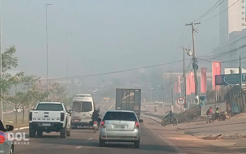 Marabá amanhece com densa fumaça devido a queimadas. Visibilidade reduzida e qualidade do ar comprometida afetam moradores, alerta Defesa Civil.